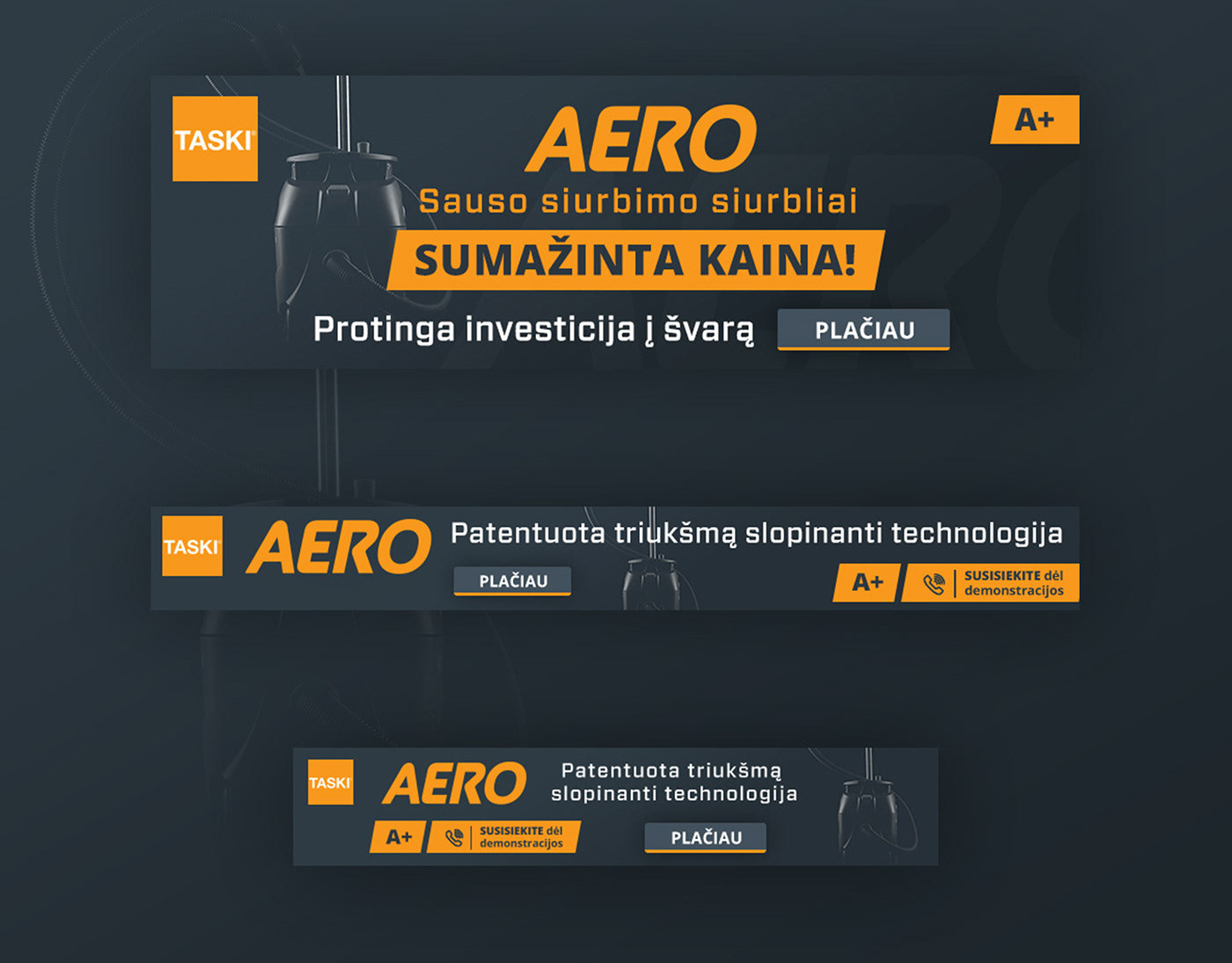 „TASKI Aero“ Banner'iai