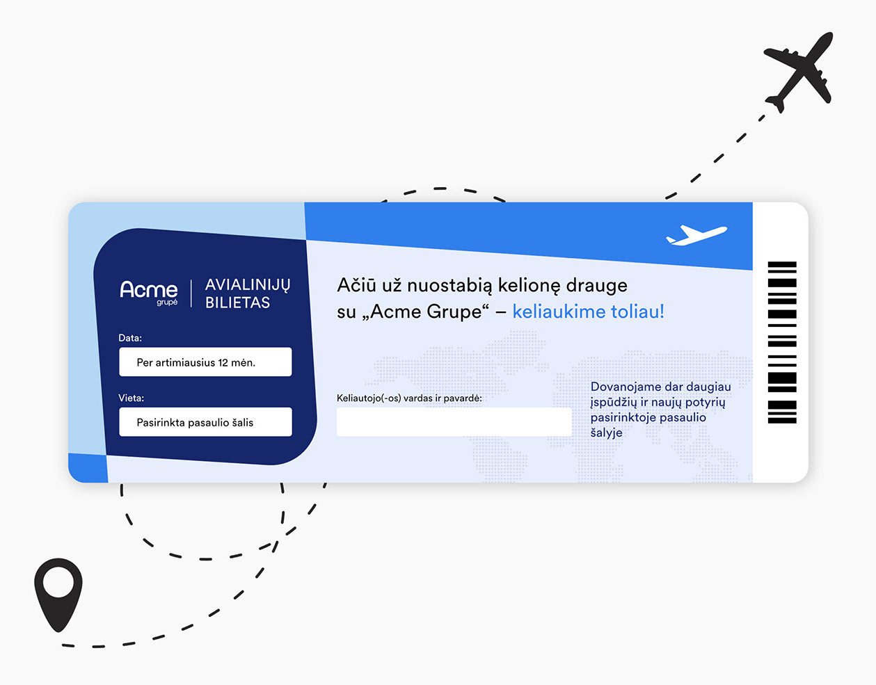 „ACME“ avialinijų bilieto dizainas