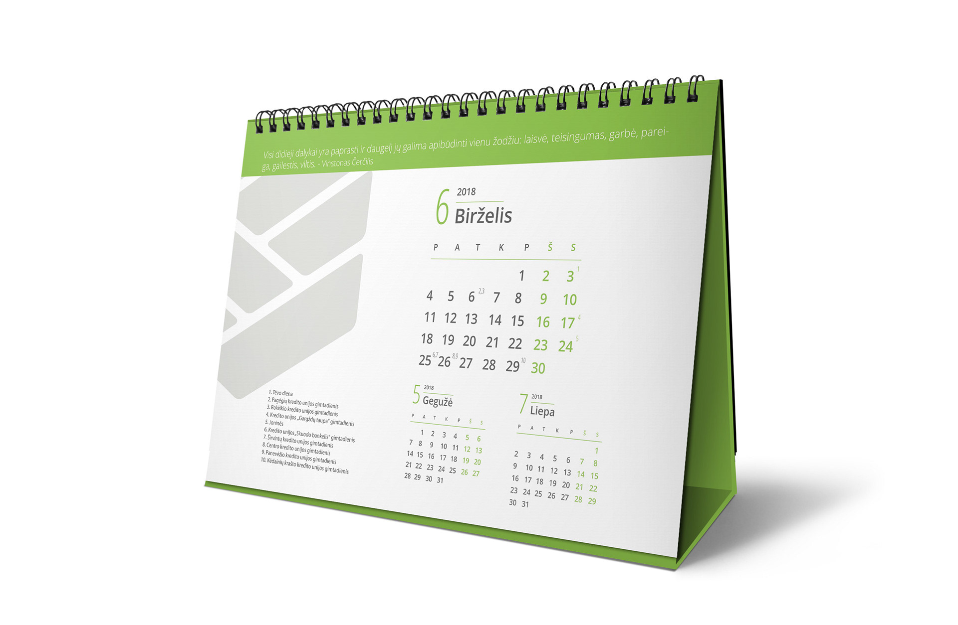 „LKU" 2018 m. stalo kalendoriaus dizainas