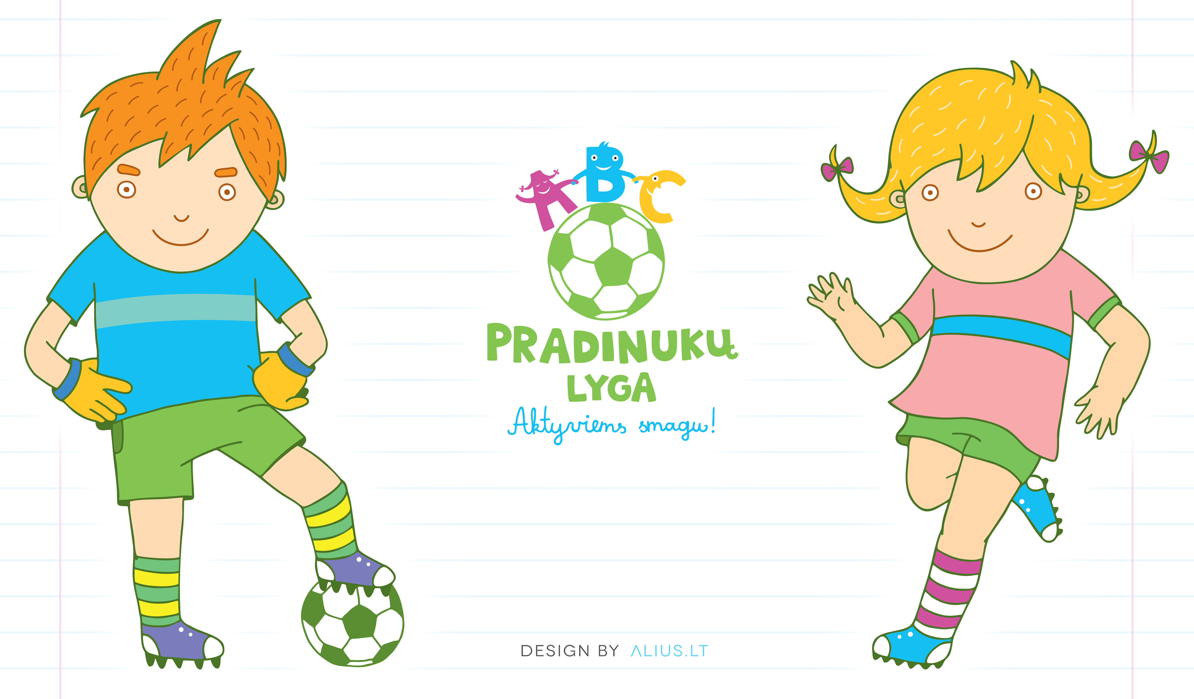 „Pradinukų lyga" - Lietuvos pradinių ir vidurinių mokyklų 1-4 klasių moksleivių futbolo turnyro iliustracijos ir logotipas. Kurta kartu su Ieva Juknyte.