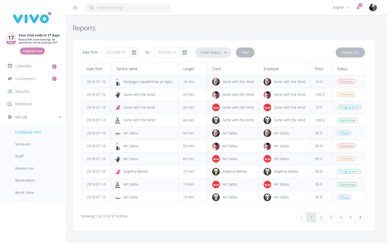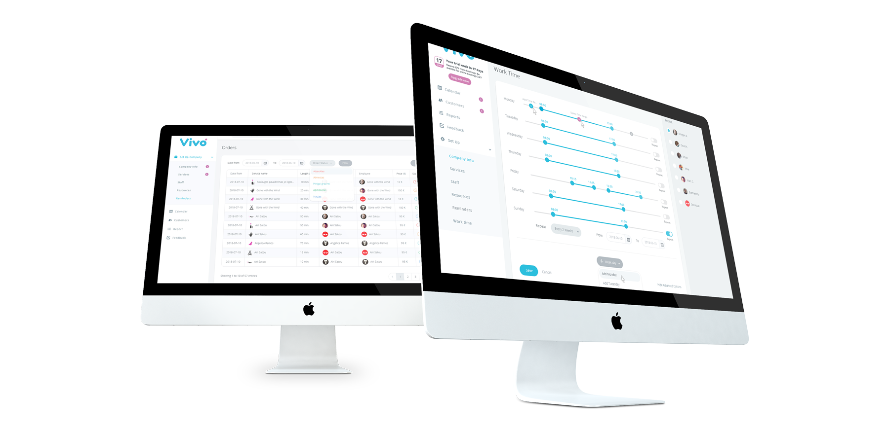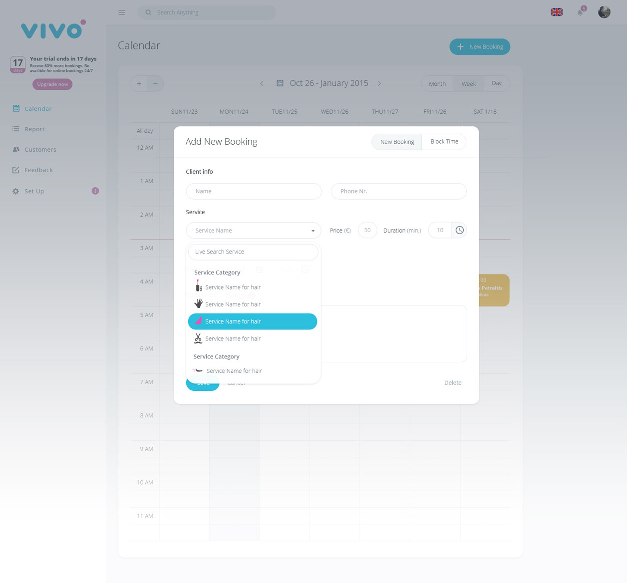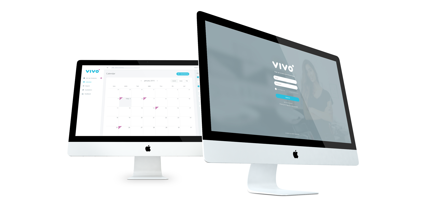 „VIVO bookings“ kalendoriaus valdymo dizainas. Vivo - rezervacijos platforma verslo augimui. Grožio salonai, Masažo kabinetai, Klinikos, Grožio salonai, SPA, Sporto klubai, Odontologijos klinikos, Gyvunėlių paslaugos, Manikiuro salonai, Teniso kortai.