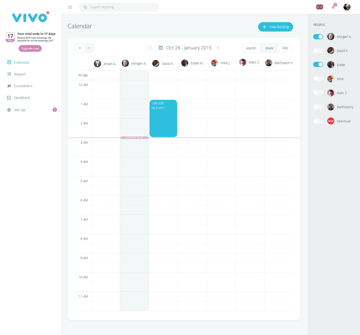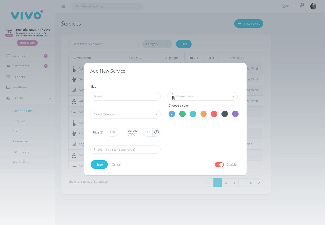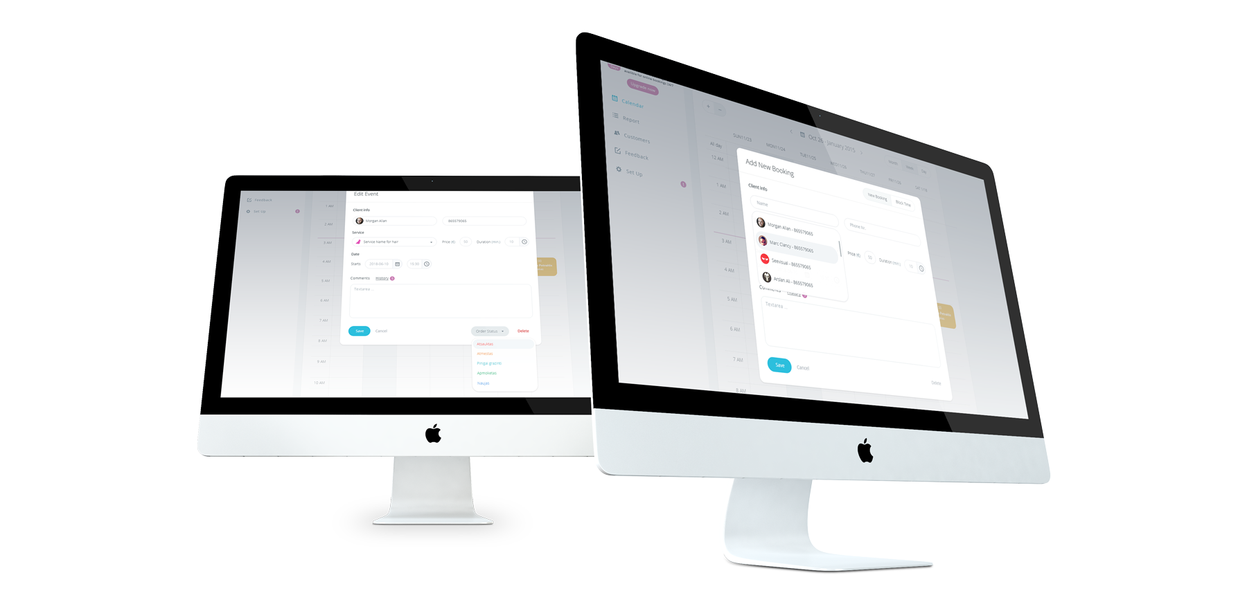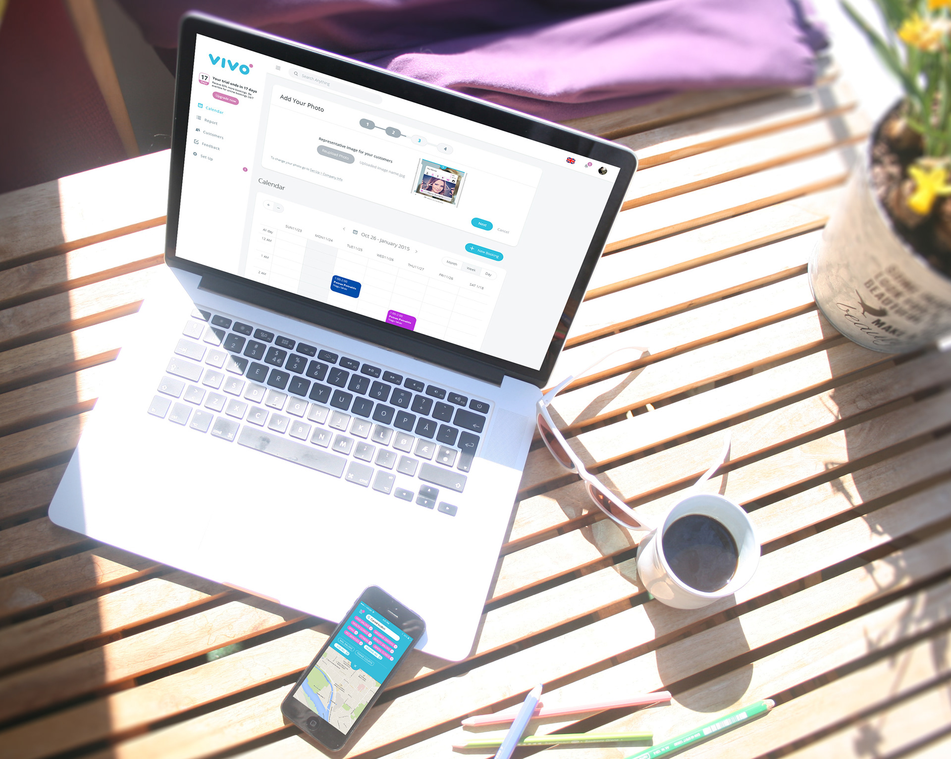 „VIVO bookings“ kalendoriaus valdymo dizainas. Vivo - rezervacijos platforma verslo augimui. Grožio salonai, Masažo kabinetai, Klinikos, Grožio salonai, SPA, Sporto klubai, Odontologijos klinikos, Gyvunėlių paslaugos, Manikiuro salonai, Teniso kortai.